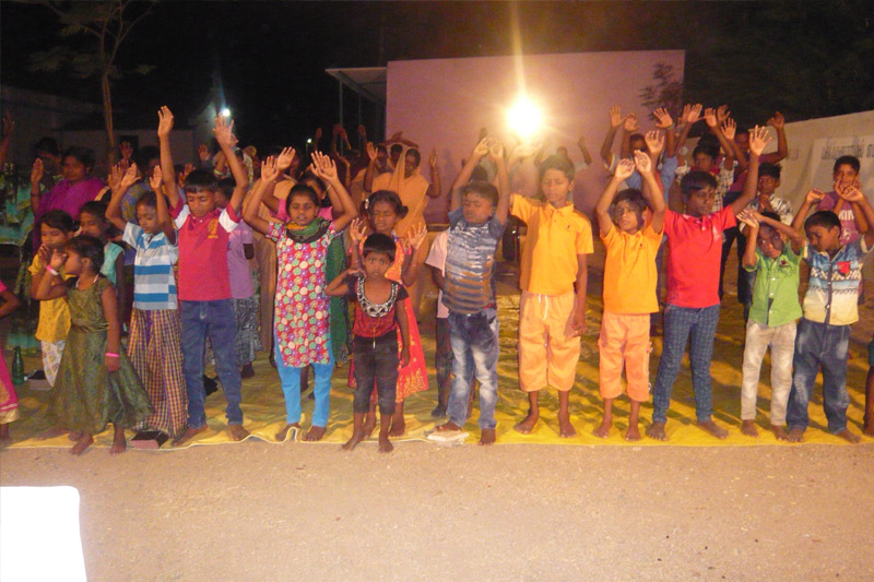 - We use audio visuals, action songs and video clippings for active participation of the children and youth. We also conduct games and distribute prizes.